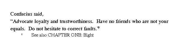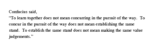 Учитель сказал: "Стремись к верности и искренности; не дружи с тем, кто тебе не ровня; не бойся исправлять ошибки".