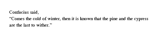 Учитель сказал: "Лишь с наступлением холодов познаешь, что сосна и кипарис увядают последними".