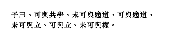 Учитель сказал: "С человеком, с которым вместе учишься, не всегда можно будет вместе следовать Дао-Пути. С человеком, с которым вместе последуешь Дао-Пути, не всегда можно будет вместе утвердиться [на этом Пути]. К человеку, с которым вместе утвердишься [на этом Пути], не всегда можно будет вместе делить ответственность".