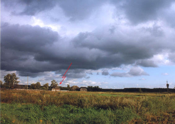 Клубная акция была воспроизведением того оригинального действия, которое впервые было проведено в августе месяце в Липовке в доме (и около дома) Игоря Бурдонова (на фотографии показано стрелкой).