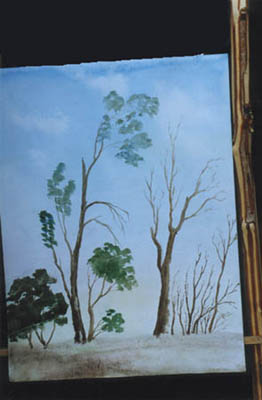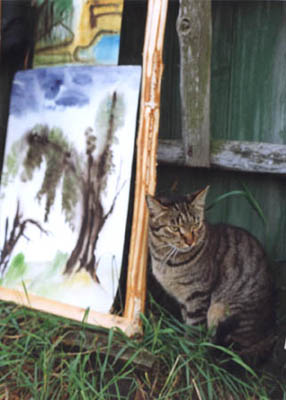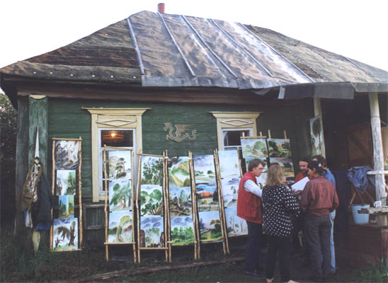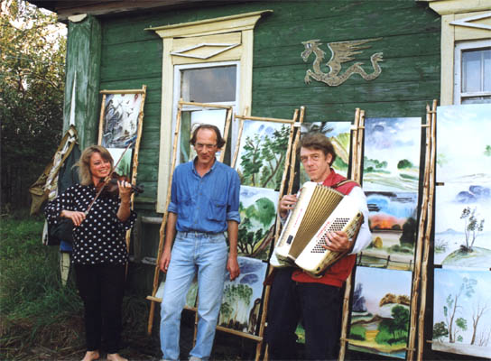 Это была композиция из акварелей, написанных этим летом в Липовке Александром Белугиным, Игорем Бурдоновым, Надеждой Красильниковой и Наталией Селиваненко, |