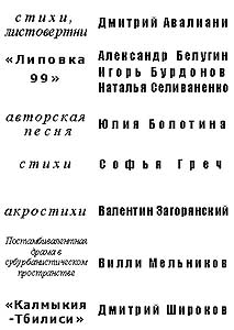| Валентин Загорянский не смог приехать на вечер, но прислал акростихи, посвящённые участникам предыдущего "Вечера на Войковской". |