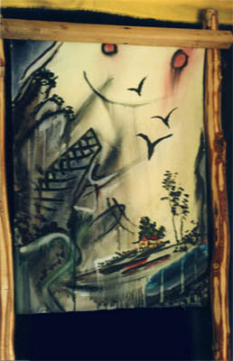 Тропа вела всё дальше вглубь страны. И чёрной птицей туча опускалась В селеньи у ручья, летящего в горах, заклеены бумагой белой окна. Оно покинуто давно. Я дальше шёл. С причудливого неба сливался свет с одою пополам и по земле струился. |