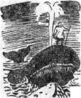 к берегу кит, ляжет головой на треугольный камень, пустит фонтан