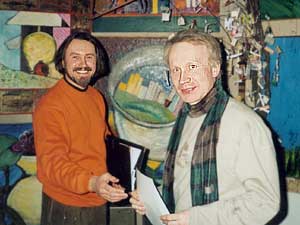 ![]() Александр Белугин вручает Сергею Федину диплом лауреата премии "Золотой сверчок" в номинации "Хоккуист года" |