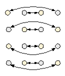 С помощью поворотов на 90o и симметрии относительно вертикальной (или горизонтальной) оси из каждого магического квадрата можно получить ещё 7 магических квадратов. Всё множество магических квадратов 4-го порядка M4 этими преобразованиями разбивается на множество K4 классов по 8 квадратов в каждом. Вот схемы двух базовых преобразований: