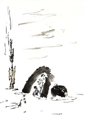 Посреди равнины есть гора - цитата из Кун-цзы гуа сян чжуань - "Комментариев Конфуция к образам к гексаграммах". Триграмма Гэнь-Гора под триграммой Кунь-Земля. Земля наверху - она "восходящая".