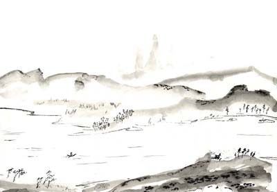 Оба перевода названия гексаграммы - Вольность и Праздность - я попытался соединить в картине и стихотворении. Поэтому вольные просторы и человек в лодке, "праздно" (беспечно) играющий на флейте (по-видимому, вместо того, чтобы заниматься делом - например, ловить рыбу).
