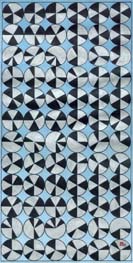 "Старые" черты являются движущимися: они переходят в свою противоположность: 9->8, 6->7. Поэтому в результате гадания, как правило, получаются две гексаграммы: одна описывает ситуацию в настоящее время; в результате превращения движущихся черт она переходит во вторую гексаграмму, описывающую ситуацию будущего. Если считать, что "молодые" черты со временем "стареют", то получается мировой круговорот светлого и темного начал, выражаемый циклической последовательностью чисел 6798. Мне хотелось представить этот числовой цикл каким-нибудь наглядным образом. Так возникла картина "ГЕНЕЗИС 6798". Представьте себе два круга одного радиуса с общим центром: один круг неподвижен, а другой вращается по часовой стрелке. Каждый круг разбит на одинаковые сектора, некоторые из которых выделены - окрашены в серебряный цвет. При вращении движущегося круга (дискретно - на один сектор) какие-то выделенные сектора будут совпадать. Число видимых секторов серебряного цвета на обоих кругах как раз и должно пробегать последовательность чисел 6798 (невыделенные сектора движущегося круга следует считать прозрачными). У этой задачи оказалось 6 возможных решений и все они представлены в виде столбцов на картине "Генезис 6798". Знаменательно, что каждый круг оказался разбит на 12 секторов, напоминая циферблат часов; на одном круге - 6 серебряных секторов, на другом - 3. Полный цикл завершается через 12 тактов, причем последовательность чисел 6798 пробегается 3 раза. Желающие могут попробовать решить эту занятную математическую задачку и проверить мой результат. Я же хочу отметить, что число 12 в Китае (и не только там) играло важную роль в исчислении времени. Сутки делились на 12 равных интервалов - страж (мы делим сутки на 24 часа, но циферблат часов разделен на 12 частей). В году было 12 полных лунных месяцев. Хорошо известен 12-летний животный календарный цикл. Он сложился в результате наблюдений за Юпитером, совершающим полный оборот вокруг Солнца примерно за 12 лет. Если же взять наименьшее общее кратное периодов обращения вокруг Солнца Юпитера и Сатурна (30 лет), то получится 60-летний календарный цикл, принятый на Дальнем Востоке и сегодня. Помимо 12 "земных ветвей" (животный цикл) его основу составляют 10 "небесных стволов" (или "пней"), соответствующих пяти элементам: Дерево-Огонь-Почва-Металл-Вода, - взятых каждый в двух ипостасях - ян и инь. На картине "КОСМОС 6798" круговорот чисел представлен как глобальный мировой процесс. Получается универсальная четырехчастная классификационная схема, в которую укладываются многие важные явления мира, как его представляли себе китайцы с древних времен. В центре картины - символ "Великого Предела" - "Тайцзи". "Великий предел движется и рождает силу ян. Движение доходит до предела, и наступает покой. Великий предел покоится и рождает силу инь. Покой доходит до предела, и снова наступает движение. То движение, то покой. Друг для друга являются корнем." (Чжоу Дуньи. "Тай цзи ту шо") Четыре девятиклеточных квадрата символизируют числа 6798 число черных клеток. В центрах квадратов изображены принятые в "Книге Перемен" обозначения движущихся и неподвижных черт. Замечу, что девятиклеточный квадрат является важнейшей логической схемой древнекитайского мышления. В частности - моделью триграмм. Но подробнее об этом - в связи с картиной "Наставления художнику". Кол